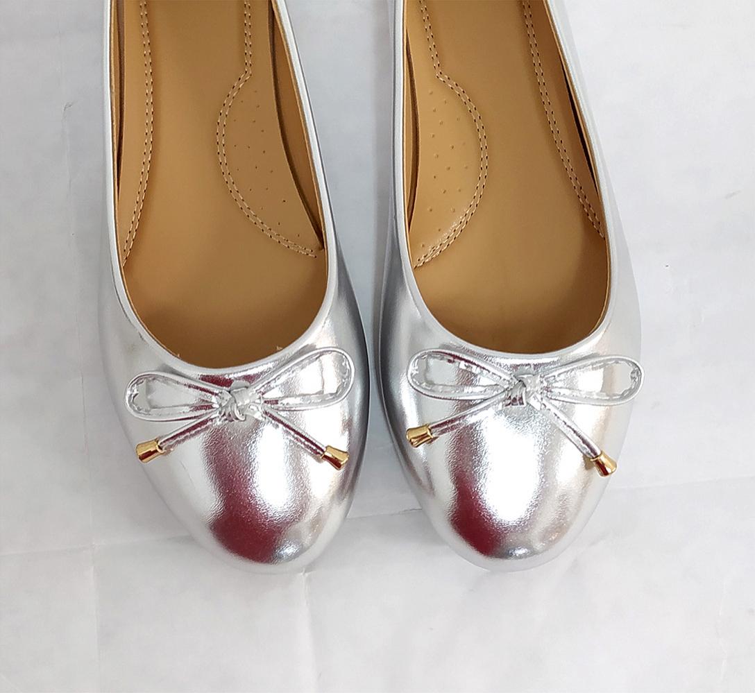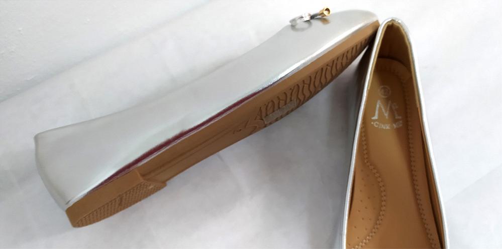 Un básico para cualquier momento. Una manoletina en plata tanto para el día a día como para fiesta. Zapato plano con medio centímetro de tacón. Suela en goma gruesa y plantilla acolchada. Lacito decorativo en la pala. Van muy justas de largo pero dan ancho, atentas a las medidas: