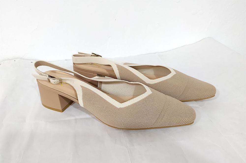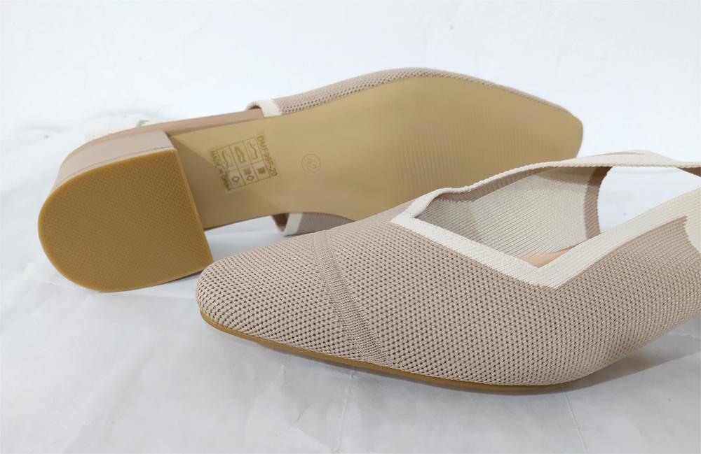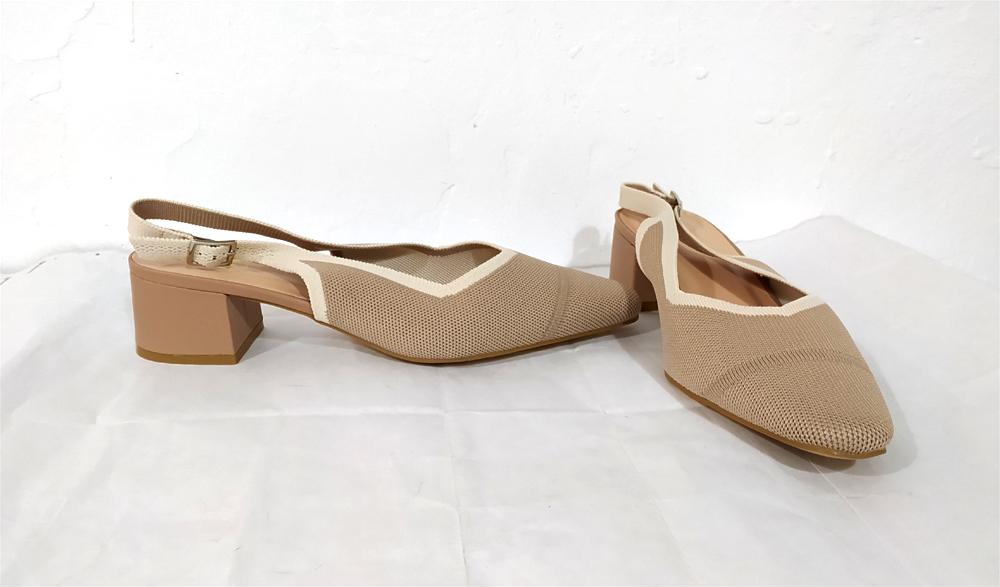 Destalonado en dos tonos de beige en textil con la punta cortada. Tacón grueso de 4 cm de alto y planta gruesa acolchada. Ideal para eventos o trabajar cómoda. Sí, se puede ir cómoda con un tacón. Admite pies anchos, estrechos o con grandes problemas. Os dejo las medidas exactas pero ya os anticipamos que dan tamaño: