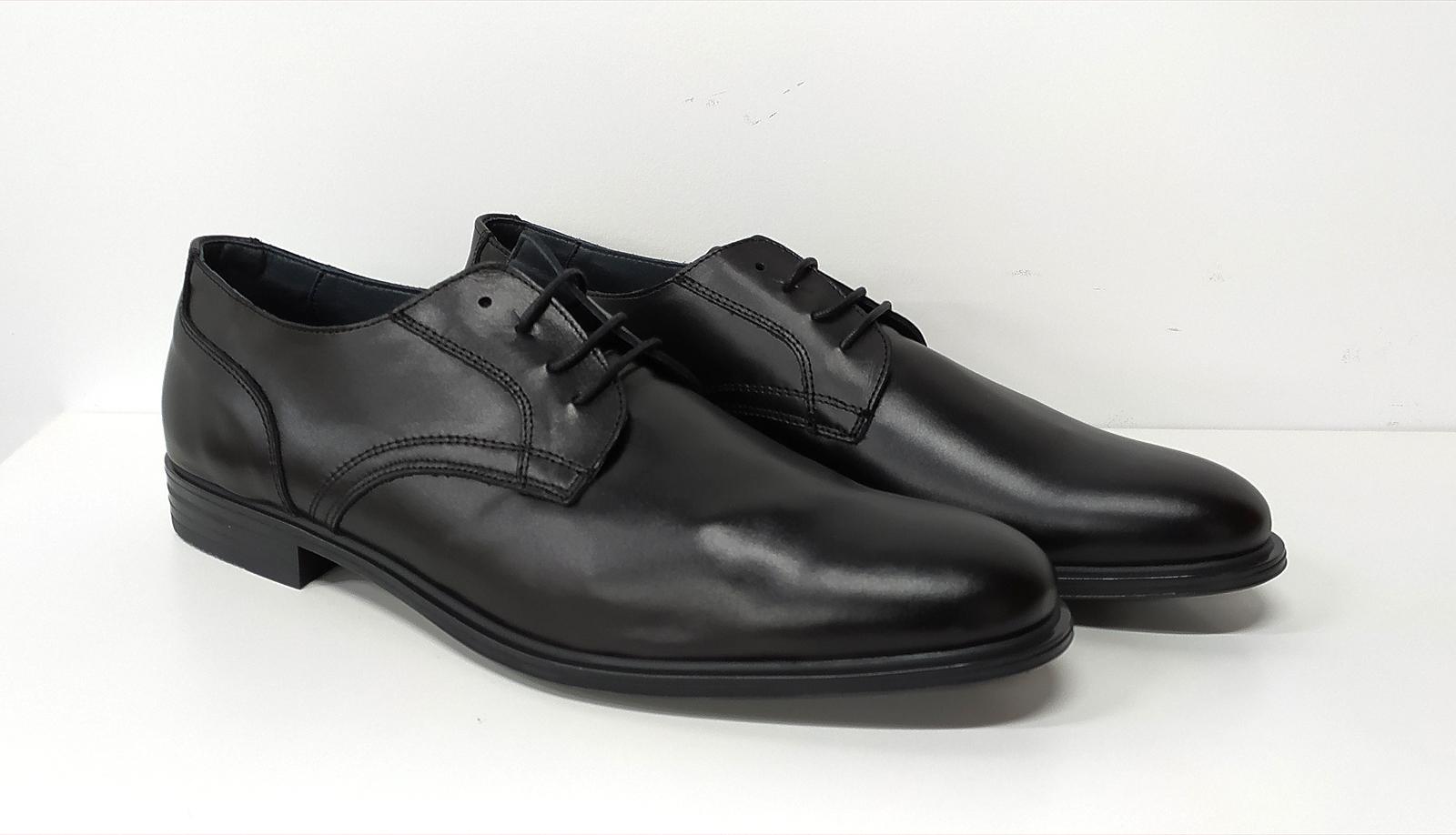 Zapato de cordones para traje en piel negra. Suela de goma, fabricado en España. Ancho 9,5, para un pie normal. Tallas del 47 al 50. Dan más talla que las deportivas habituales, en comparación necesitarás una menos. Os dejamos las medidas de largo de extremo a extremo: