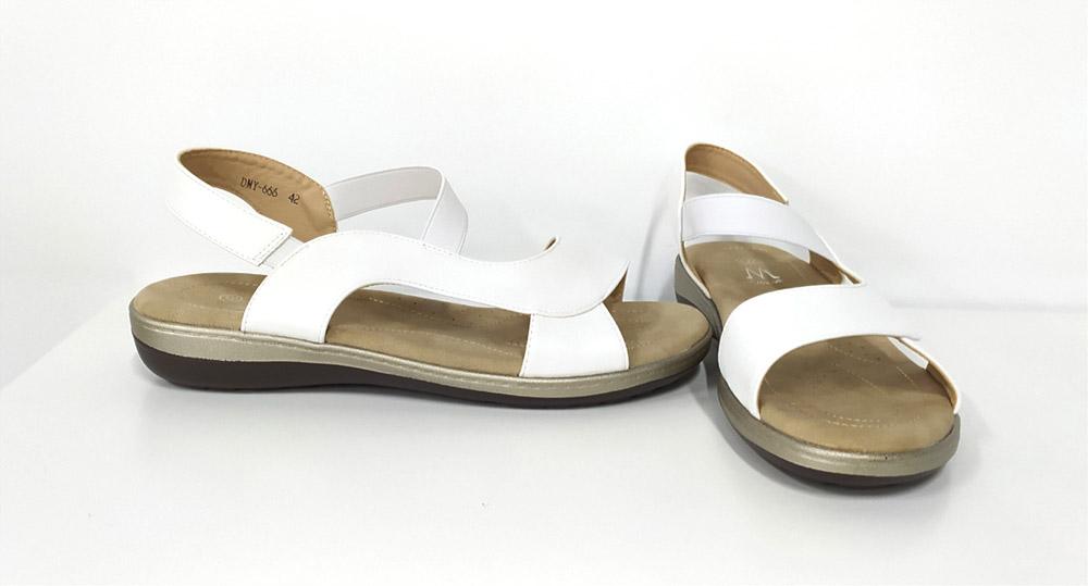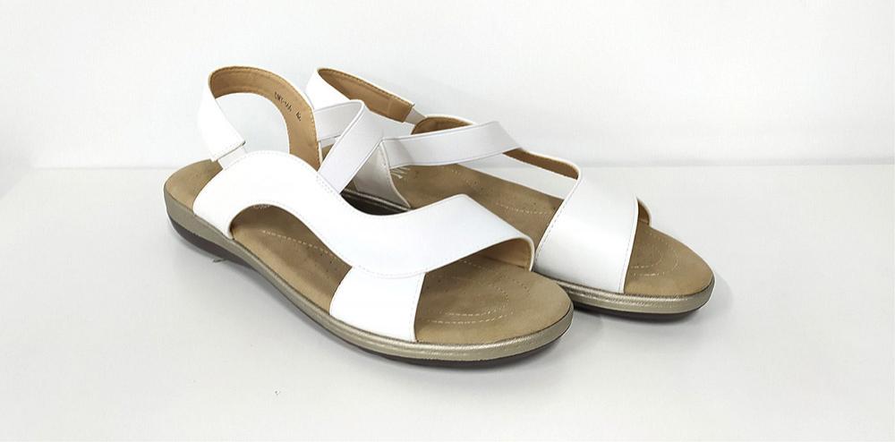 Sandalia en terminación blancopara vestir o diario. Cuña baja de 3 cm y 1 cm en la planta. Plantilla acolchada con arco plantar para que tienen problemas con la fascitis. Dan ancho pero si necesitas un poco más hay otro modelo. Os dejo las medidas: