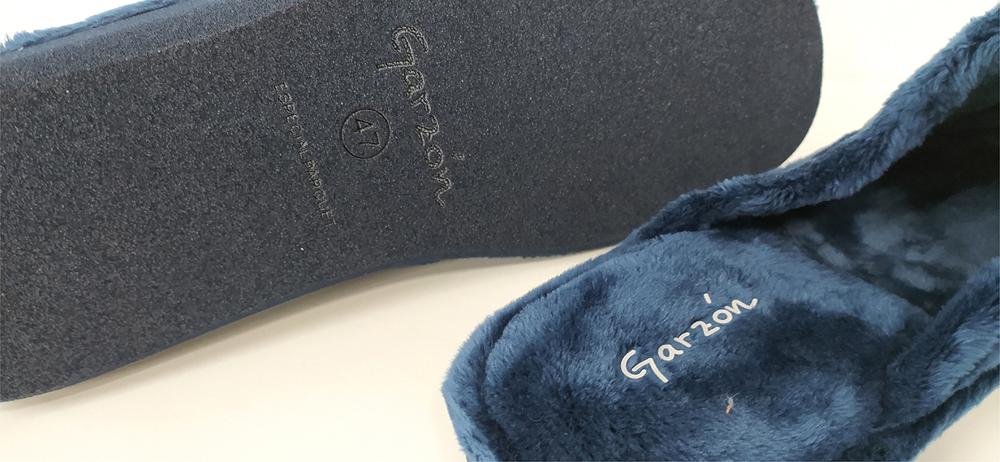 Divertida zapatilla solo en tallas grandes del 47 al 49 de la marca española Garzón. Suelo especial parquet, no deja marcas. Terciopelo azul marino para la terminación. Se pueden lavar en lavadora. Larga duración. Medidas de largo, sin contar el borde: