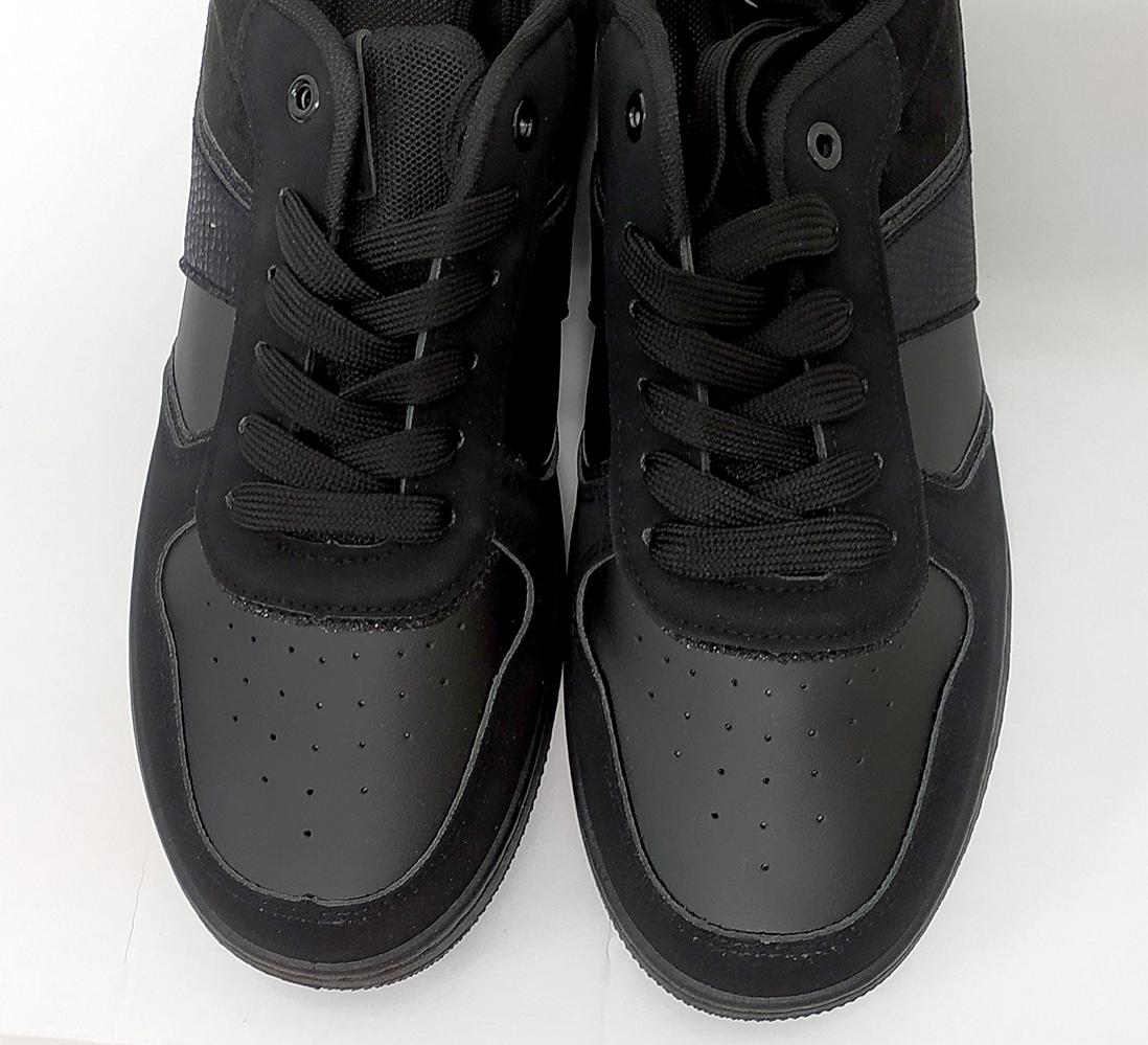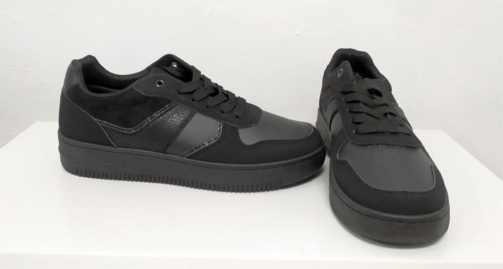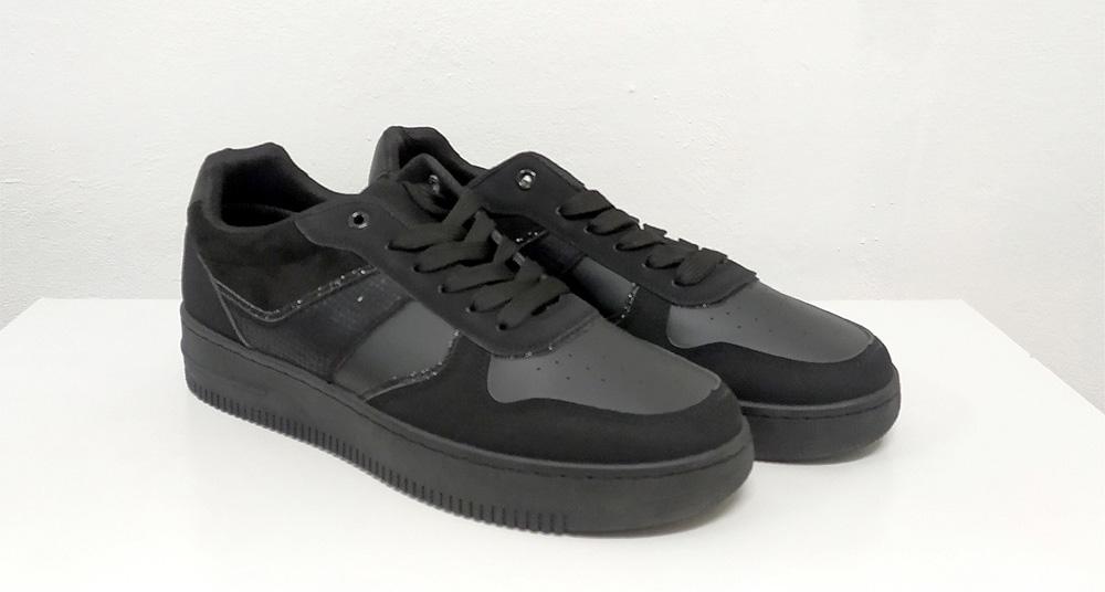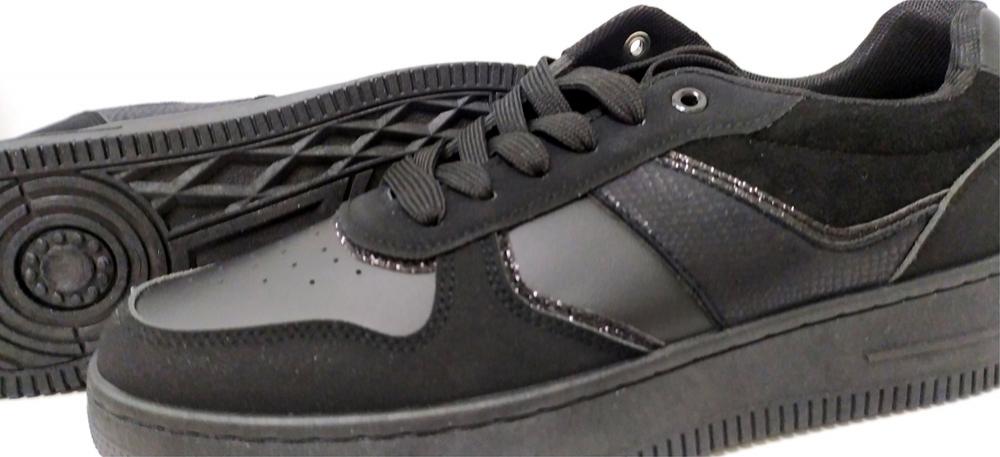 Deportivas negras básicas. Para dar un toque femenino tienen varias terminaciones en textil y sintético con unos ligeros brillos en las costuras. Suela gruesa antideslizante y plantillas extraibles. Anchas por delante, fijaros en la punta, son redondas. Os dejo medidas de la plantilla, lo que debería medir vuestro pie como mucho: