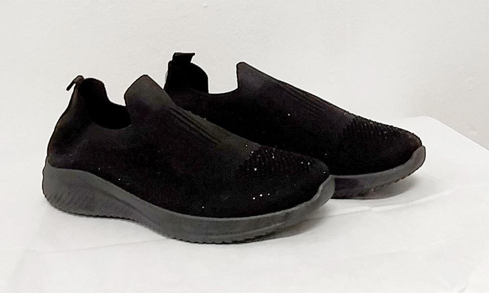Deportiva en textil con remaches de brillos en negro. Comodísimas, ya las hemos traído hasta que se agoraron. Dan ancho y estiran de largo. Coge la talla justa. Plantilla extriable y suela de goma con desnivel. Medidas: