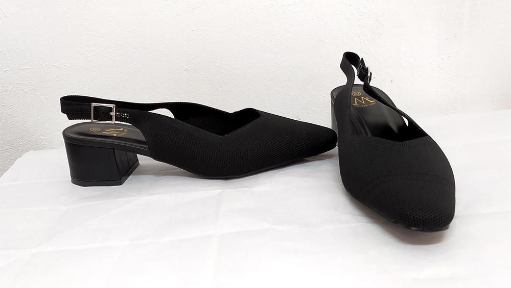 Destalonado negro en tacón de 3 cm en textil elástico ideal para los eventos del verano si no te gusta enseñar dedos. Al se un textil moderadamente elástico permite muchos anchos de pie sin que se clave a las de los anchos. Os dejo medidas le podrían servir a alguien del 45 estrecho: