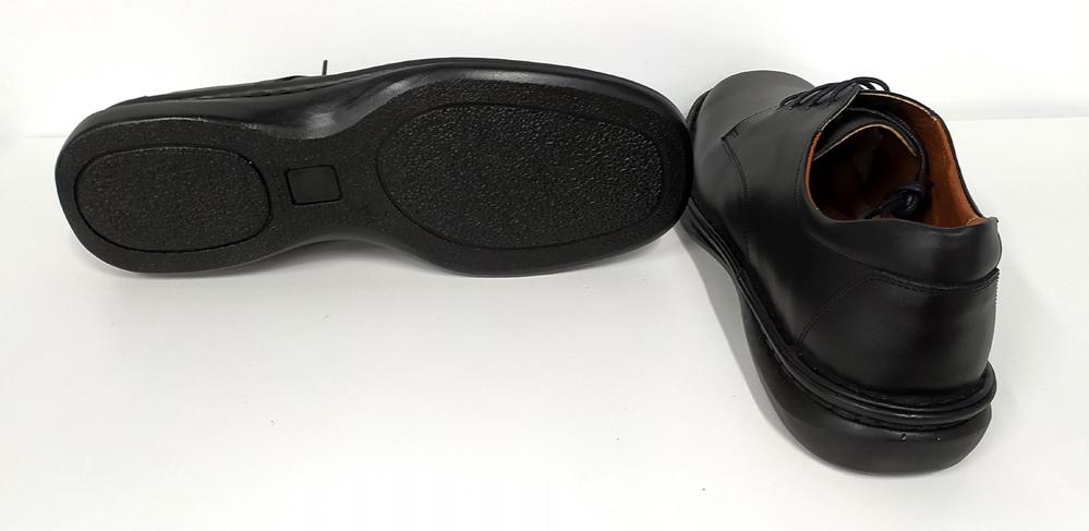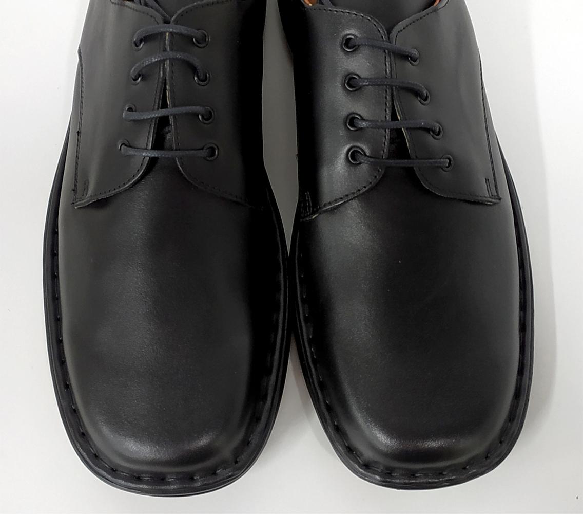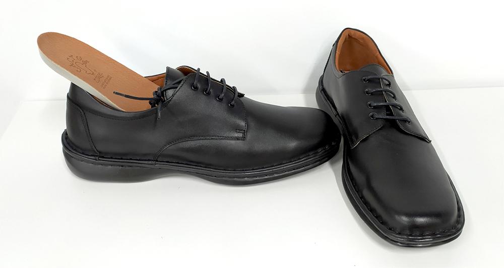 Zapato de cordones en negro con suela de goma corrida y ancho especial. Plantillas extraibles. Interior y exterior en piel, aceptan dedos garra, ideal para el día a día. Dan largo y ancho, pedid una talla menos que vuestras deportivas habituales. Medidas de largo: