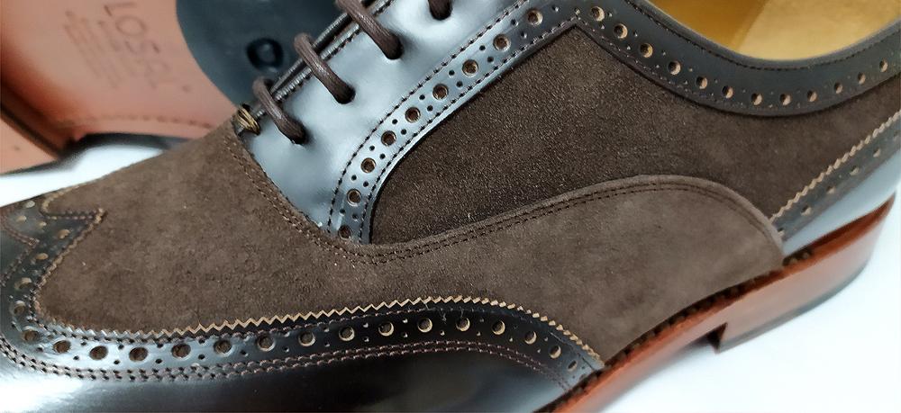 Un zapato de cordones en marrón oscuro para trabajar o ceremonia para toda la vida. Combinación de pieles y suela de cuero. Ancho 10, lo que permite incluir una plantilla fina si no estás acostumbrado a los zapatos con suela dura. Pala vega son los picados que decoran todo el zapato. Un clásico. Medidas de extremo a extremo: