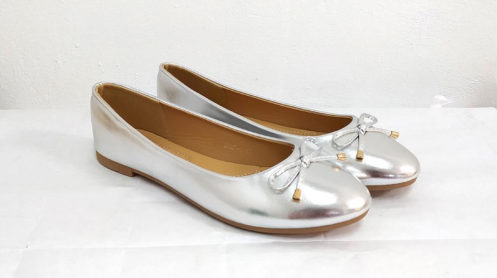 Un básico para cualquier momento. Una manoletina en plata tanto para el día a día como para fiesta. Zapato plano con medio centímetro de tacón. Suela en goma gruesa y plantilla acolchada. Lacito decorativo en la pala. Van muy justas de largo pero dan ancho, atentas a las medidas:
