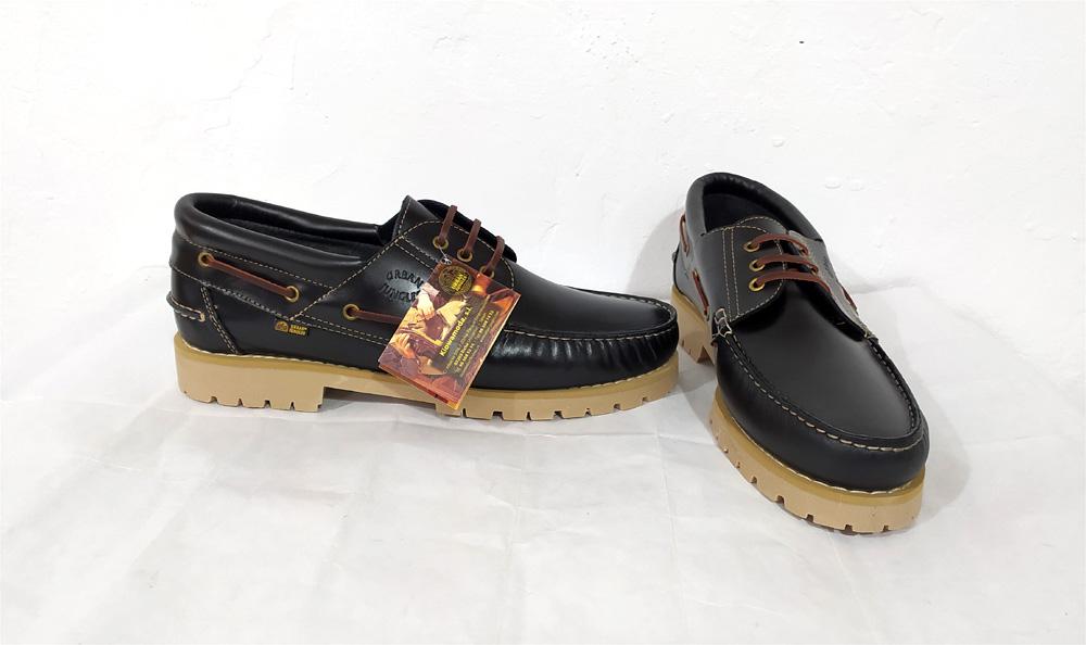 Náutico de suela gruesa en piel color negro en tallas del 47 al 52. Un básico para todo el año. Suela en color beige. Cordonera en marrón. Atentos a las medidas en cms, no coinciden los de suela fina y los de gruesa. Pide una talla menos que tus deportivas habituales: