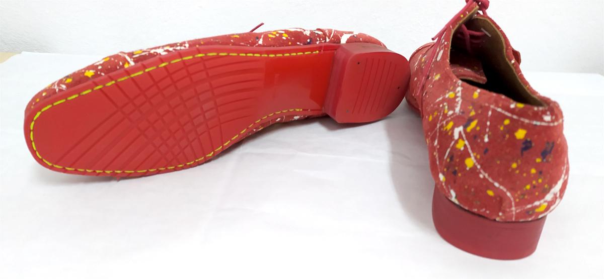 Si buscas zapatos diferentes Pepe Milán es tu marca. Zapato unisex, un básico blucher fantasía de cordones en ante rojo. Forro de piel, suela de goma y tacón rojo. Para pies estrechos.